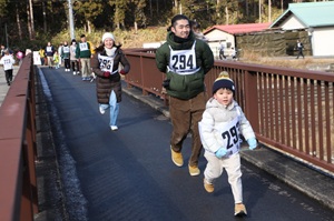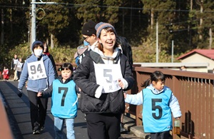ピストルの合図で一斉にスタートしたランナーは、それぞれのペースで力強く走り、参加者全員が無事に完走しました。