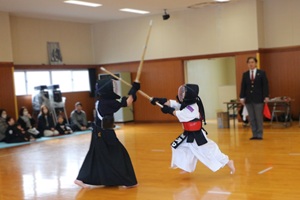 67回の歴史を誇る剣道大会は総当たり戦で実施され、小・中学生が気迫あふれる打ち込みを披露しました。