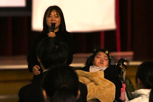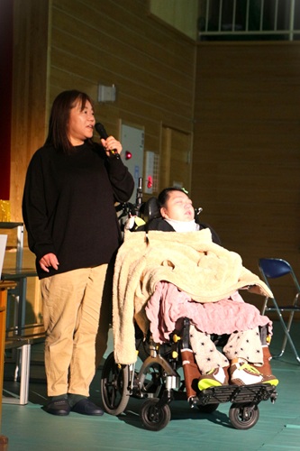 第一部では、飛騨市の勝田なお子さん・萌さん(結萌空間)が講演をし、萌さんが度重なる発作や入院を乗り越えて歩んできた日々を語られました。
